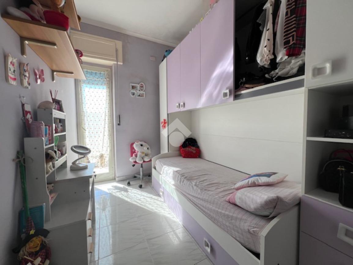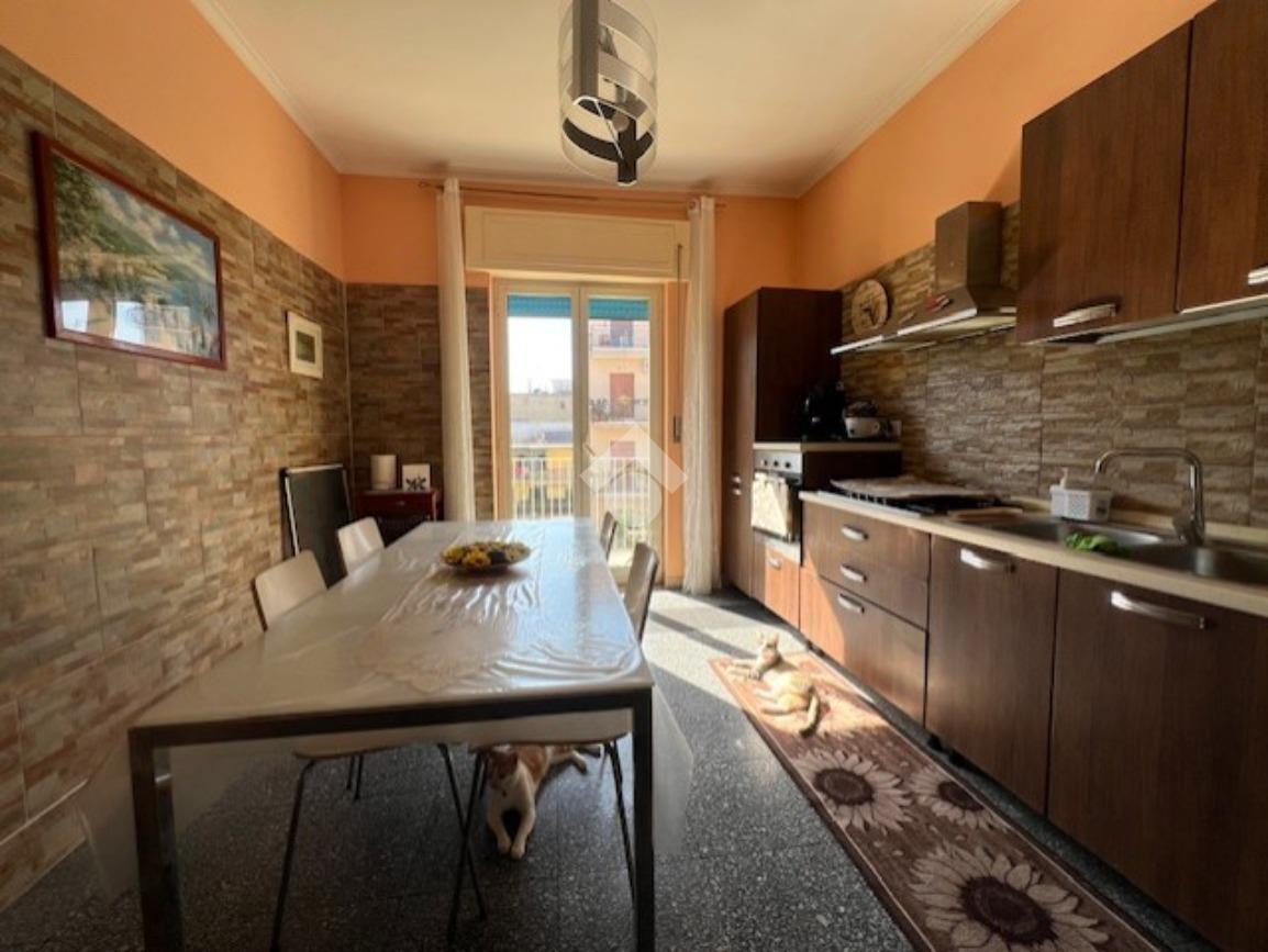 La superficie si compone di tre vani, così distribuiti:tre camere, un bagno finestrato e una cucina abitabile. Gli ambienti sono ben disposti, funzionali e godono di luce naturale per gran parte della giornata, grazie alla doppia esposizione.